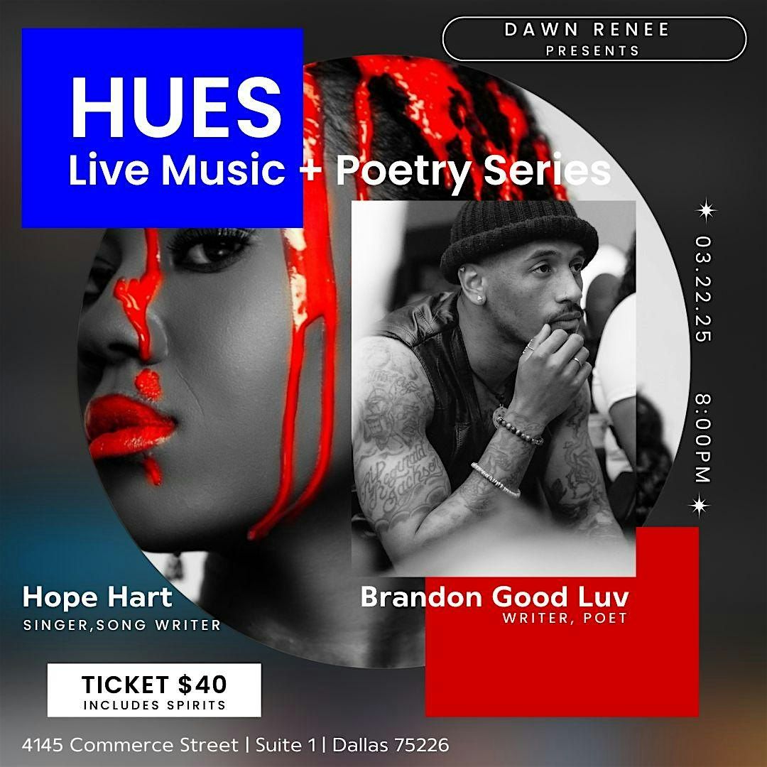 HUES is a LIVE MUSIC + POETRY series. HUES is crafted out of the concept of COLOR theory which gives definition of how color influences our mind, energy and spirit. This will be an intense, immersive experience for all.
