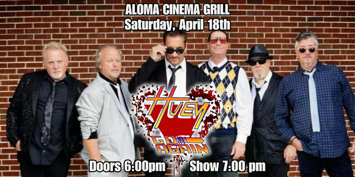 This is a dinner show seating so get your tickets in advance to secure your seats. VIP sells out fast so get your tickets NOW! Join us for Huey Lewis and The News tribute "Huey Go Again" LIVE at Aloma Cinema Grill!