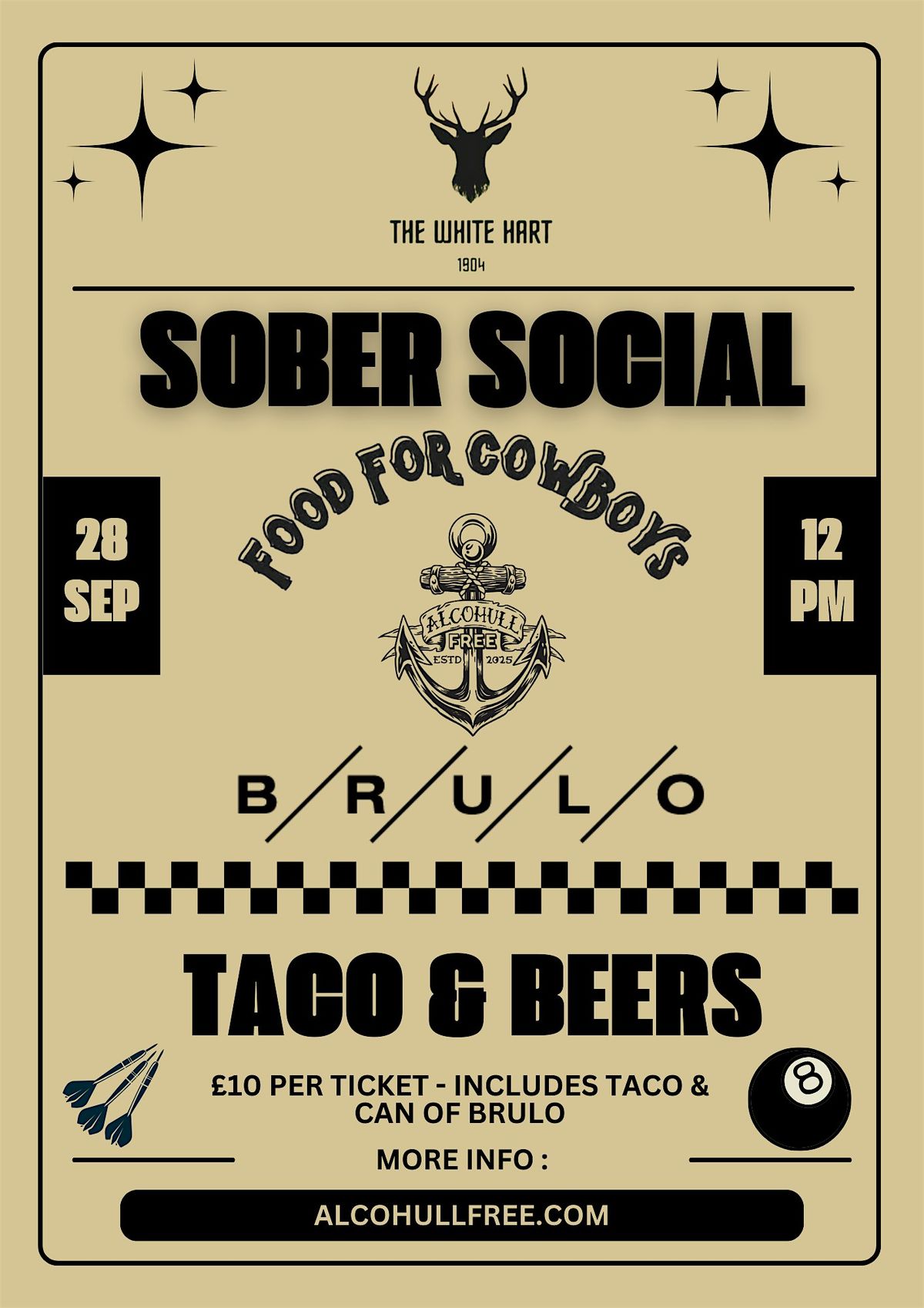 Welcome to Sober Social - Taco & Beer at The White Hart Pub! Join us on September 28, 2025 at 12:00 PM for a fun-filled afternoon.