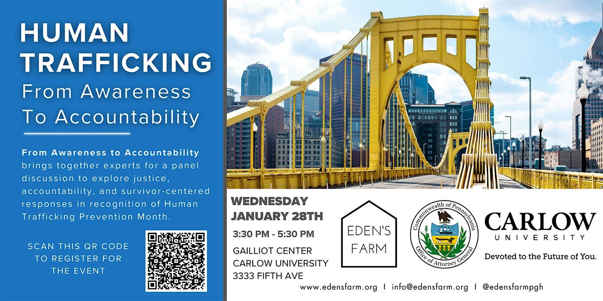 From Awareness to Accountability is a timely panel discussion hosted by Eden’s Farm during Human Trafficking Prevention Month, a moment when national attention is heightened and public conversations are increasingly shaped by high-profile trafficking and exploitation cases in the media. As these cases unfold, they raise urgent questions about accountability, system response, and the realities survivors face long after public attention fades.