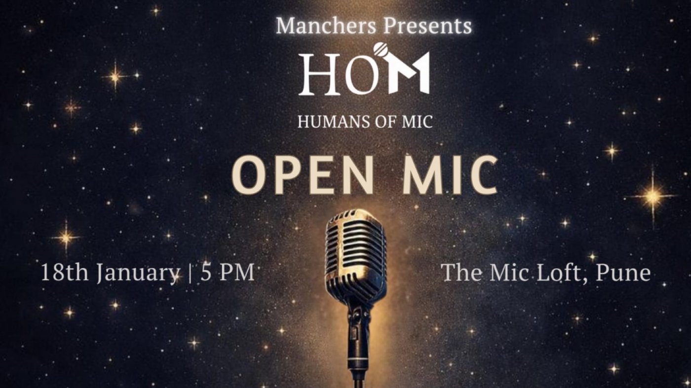 Manchers presents Humans of Mic in Pune, hosted by Nisha, bringing warmth, ease, and the kind of presence that makes every performer feel seen and every story feel safe.