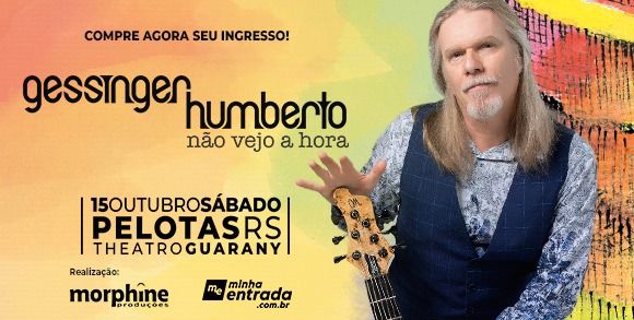 A Tour "Não vejo a hora" passa por Pelotas no dia 15 de outubro de 2022. Humberto Gessinger sobe ao palco do Theatro Guarany para levar os fãs ao delírio com suas novas composições e seus antigos sucessos em um show esperado desde antes da pandemia. Vale lembrar que os ingressos adquiridos para o show de 2020 seguem valendo, basta reapresentá-los na portaria do evento no dia do show!