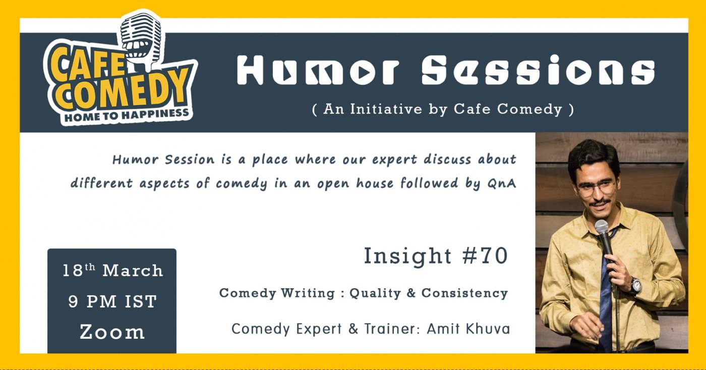 'Humor Sessions' is an initiative by India's Premiere Comedy Training Academy, 'Cafe Comedy', for all aspiring and working comedians. This is where an expert shares a brief insight about comedy during an hour-long session.