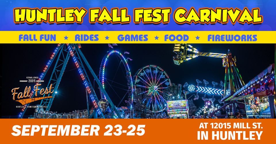 ? HUNTLEY FALL FEST CARNIVAL: September 23-25 located at 12015 Mill St. in Huntley. ?Rides, ?Games, ?Food, ? Fireworks, ?Entertainment, ?Fall Family Activities, and FUN!