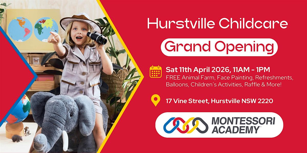 Join us for a FREE day of Family Fun to celebrate the Grand Opening of Hurstville Montessori Academy Childcare & Early Learning Centre!
