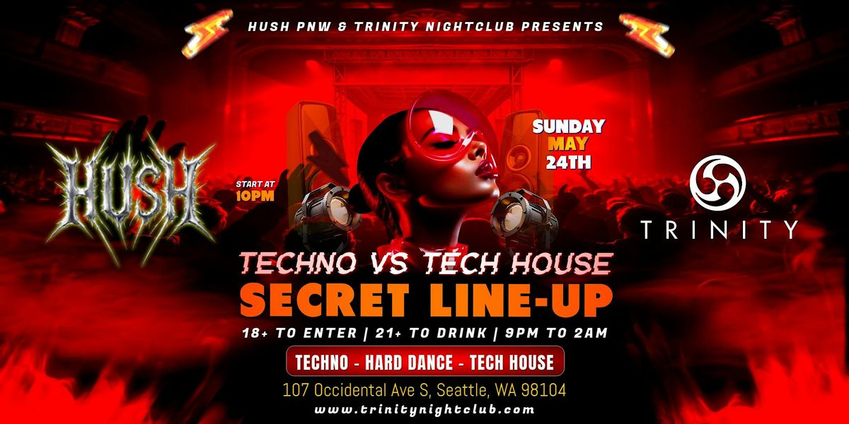 "SECRET LINE UP" Starting the night off with Tech House and building up into TechnoHush know for their hard hitting Techno events teams up with Trinity Nightclub to bring you all a night of high energy dance music!!!- inside a venue built for the experience, with 360-degree LED walls and a world-class sound system.
