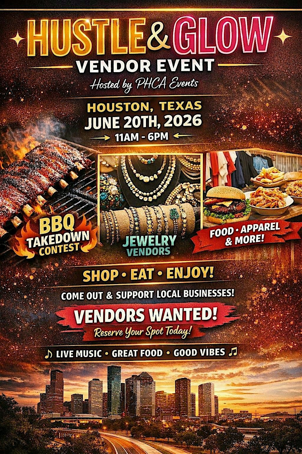 Hustle & Glow Vendor Event and BBQ showcase