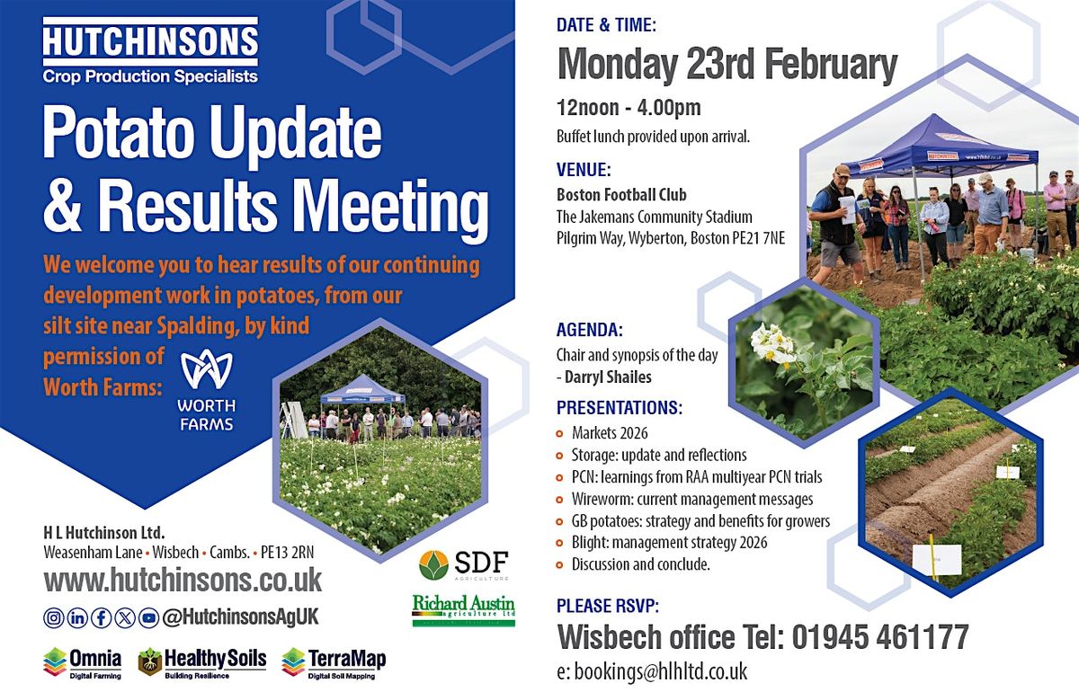 We welcome you to hear results of our continuing development work in potatoes, from our silt site near Spalding, by kind permission of Worth Farms: