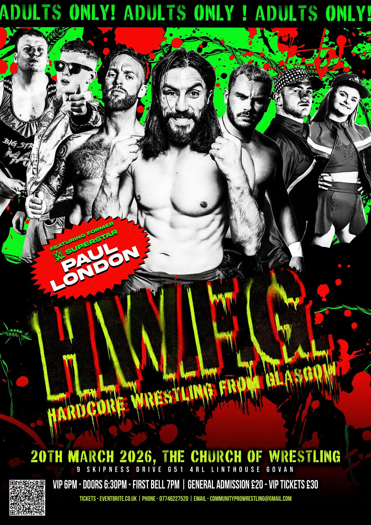 Join us for H.W.F.G 3 Glasgow newest adult only wrestling show featuring former WWE star Paul London !
