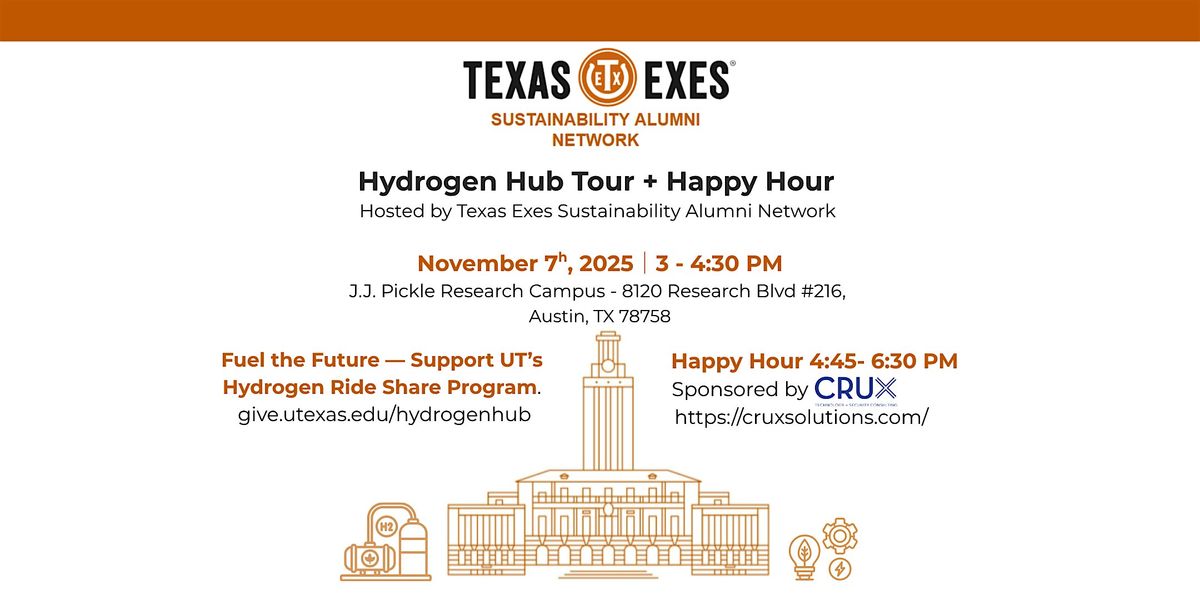 Join the Texas Exes Sustainability Alumni Network for an exclusive tour of UT Austin’s Hydrogen Hub at the J.J. Pickle Research Campus — where innovation meets sustainability.
