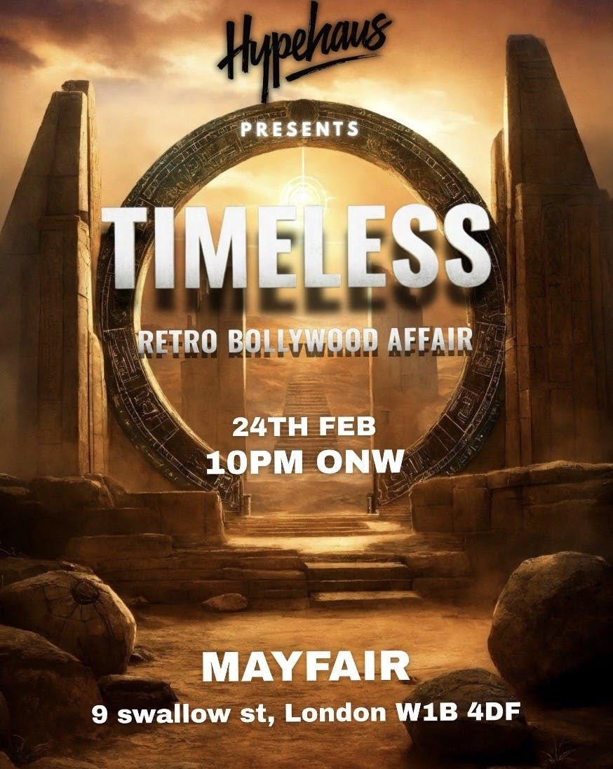 Hypehaus Presents: TIMELESS – A Retro Bollywood Affair ✨Set in the heart of Mayfair, this immersive retro experience blends vintage vibes with a modern party atmosphere. Expect dazzling visuals, timeless tracks, and an electrifying dancefloor as we celebrate Bollywood the way it was meant to be — bold, vibrant, and unforgettable.