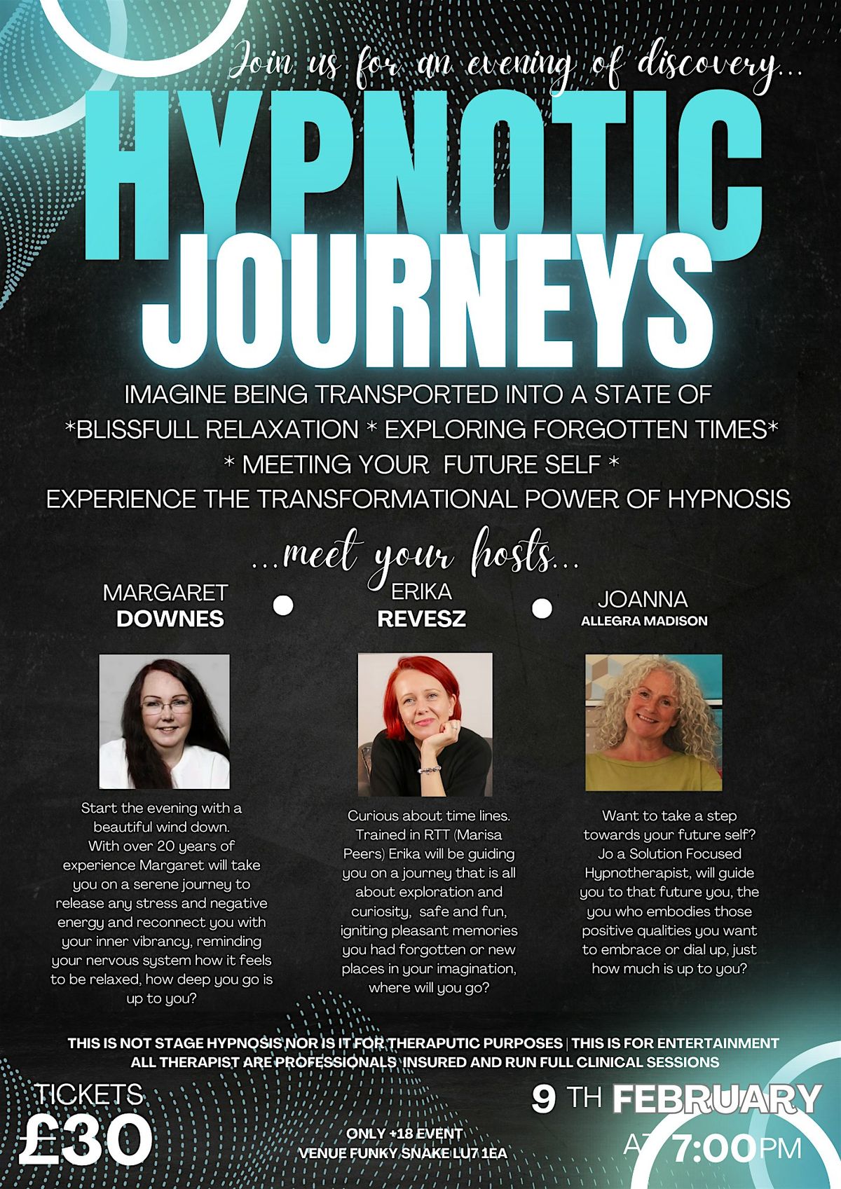 Dive into Hypnotic Journeys for 3 mind-blowing experiences: chill, explore past lives, or meet your future self!About this Event