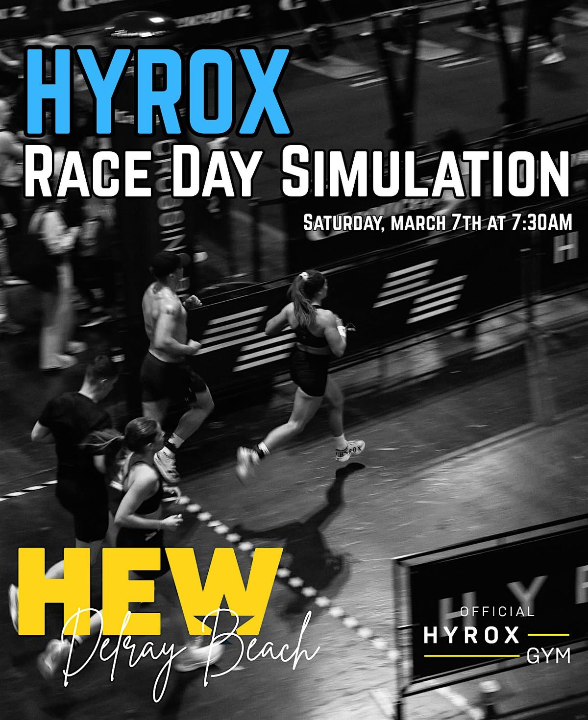 Come join us for an exciting day of a HYROX Race Simulation at HEW Fitness Delray Beach 5195 W Atlantic Ave! Test your strength and endurance and establish your race baseline performance in this ultimate fitness challenge. Sign up for a singles category: Women's Open, Women's Pro, Men's Open, Men's Pro or partner up and do Men's or Women's Doubles with a partner!! Heats will begin promptly at 730AM.