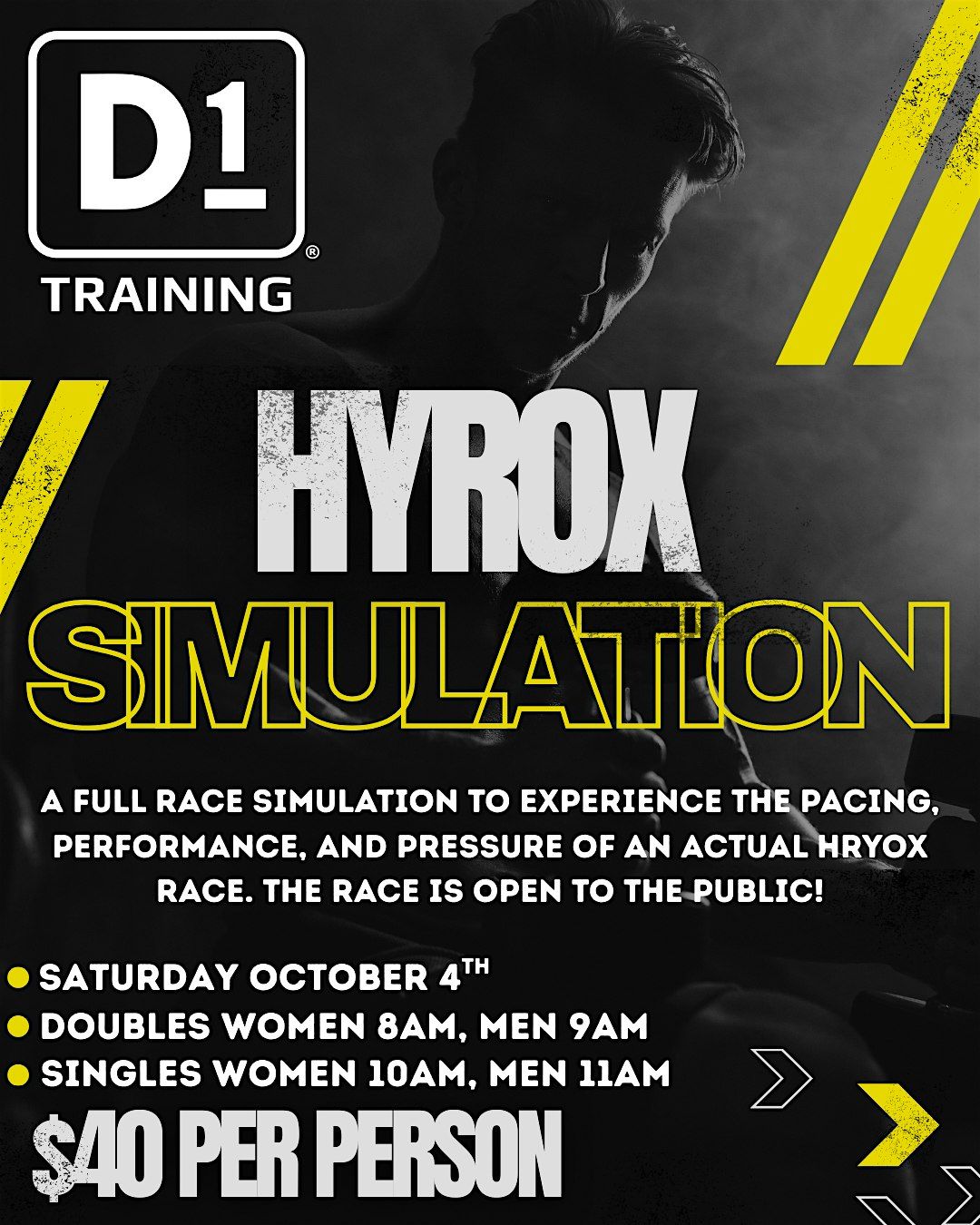 This is a full HYROX simulation race that is open to the public! Whether you've signed up for a race, or you're just interested in competing in the future, this race will allow you to experience the pacing and performance of a race in a controlled environment without spending the big bucks.