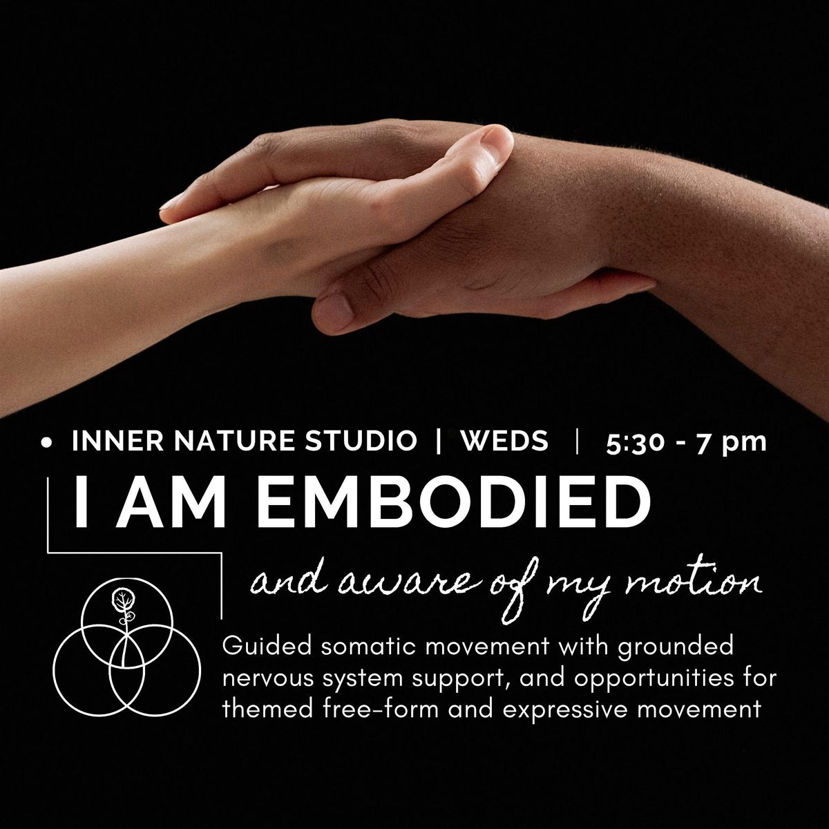 The experience begins with grounding and mindful presence, then opens into themed, self-directed movement pathways that allow each participant to move in ways that feel responsive and true in the moment. The session closes with reflection in circle, supporting real world re-integration and present awareness.