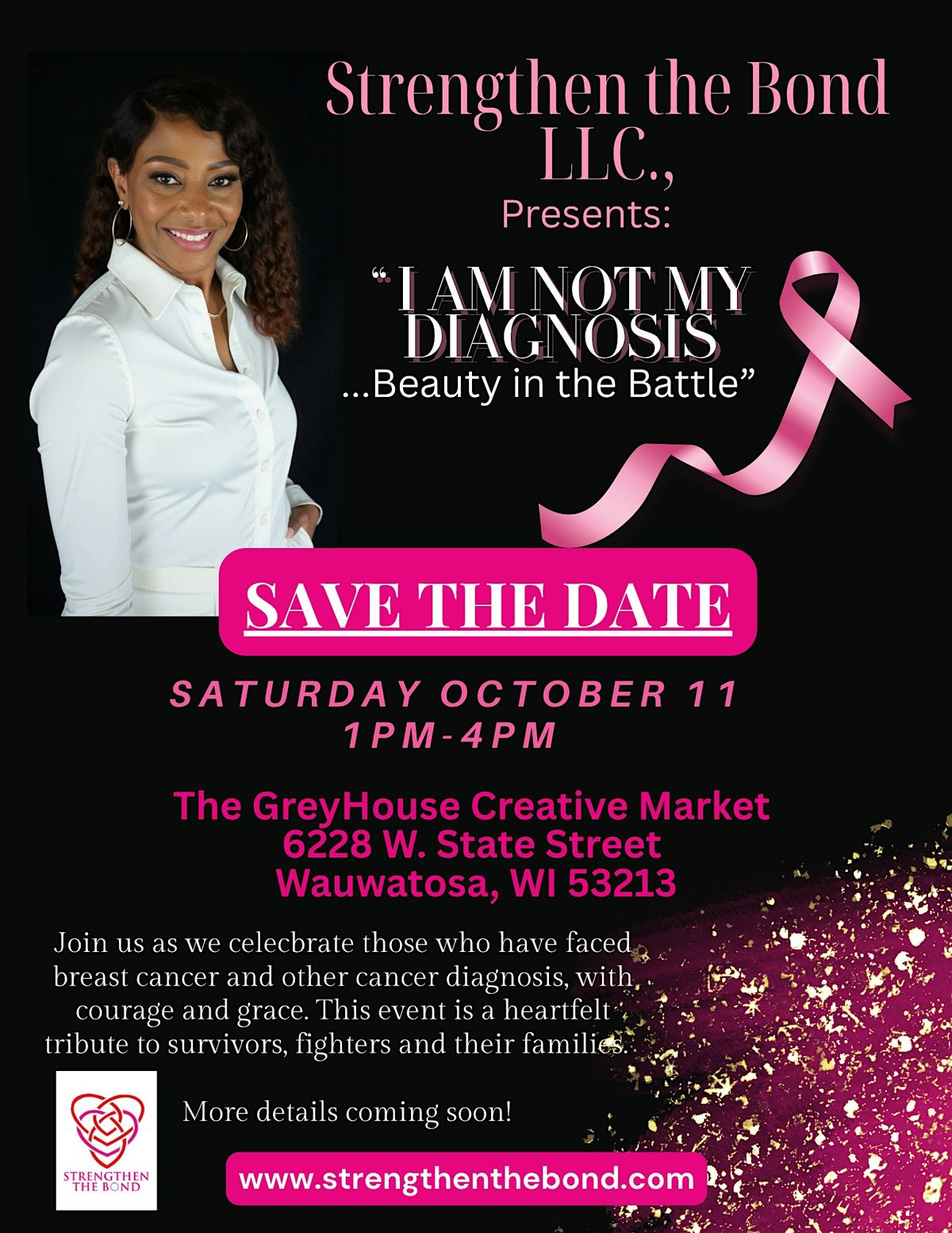 I Am Not My Diagnosis: Beauty In The Battle is a bold and breathtaking tribute to the warriors who’ve faced cancer with unshakable faith and fierce resilience. Hosted by Strengthen The Bond, LLC, this unforgettable afternoon will honor survivors, uplift families, and ignite hope through powerful testimonies, moving tributes, worship, and sisterhood. It’s not just an event, it’s a movement declaring that cancer may touch the body, but it cannot crush the soul. We celebrate the beauty that rises from pain, the strength found in every scar, and the victory behind every tear. A portion of all proceeds will benefit Susan G. Komen®, helping fund life-saving research and support services. Please stand with us as we honor the fighters, remember the fallen, and empower the future. Because your diagnosis is not your identity, your courage is your crown. You are beauty in the battle.