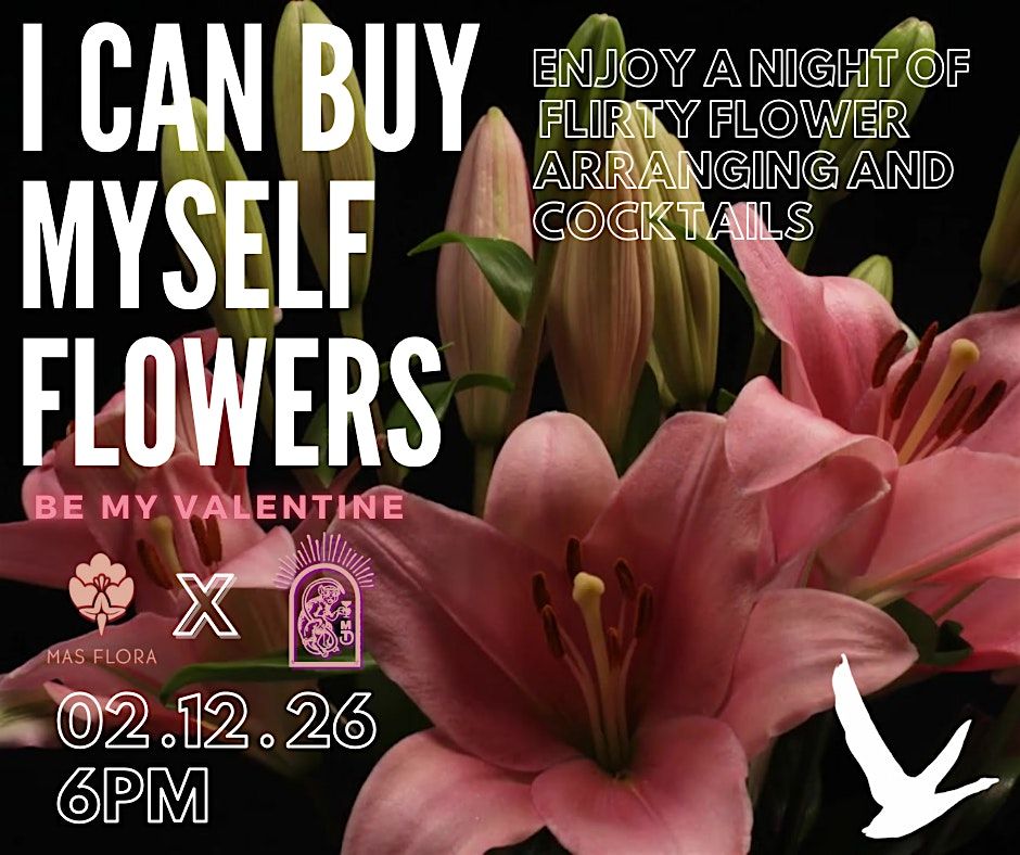 Ticket price includes flowers with vase, a cocktail from the specialty menu, a mini grey goose berry rouge take home bottle, and a sweet treat.