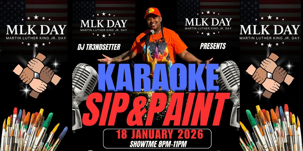 Get ready for an unforgettable MLK Weekend experience at I Have a Dream Karaoke Sip & Paint—our 6th show! 🎤🎨 This isn’t just an event, it’s a vibe. Expect high-energy karaoke, guided painting, great music, laughter, and an uplifting crowd. Whether you’re singing your heart out or painting your vision, you’ll leave inspired, connected, and smiling. No experience needed—just come ready to lift your voice, express yourself, sip, vibe, and dream big. ✨