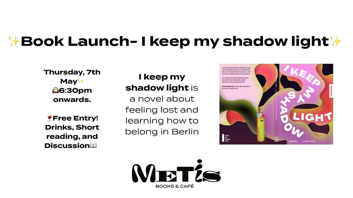 I keep my shadow light is a novel about feeling lost and learning how to belong in Berlin. Join us for the Book Launch at Metis Books and Café by registering. Your free entry includes a drink, a short reading, and discussions. The novel will be available for purchase at the store.