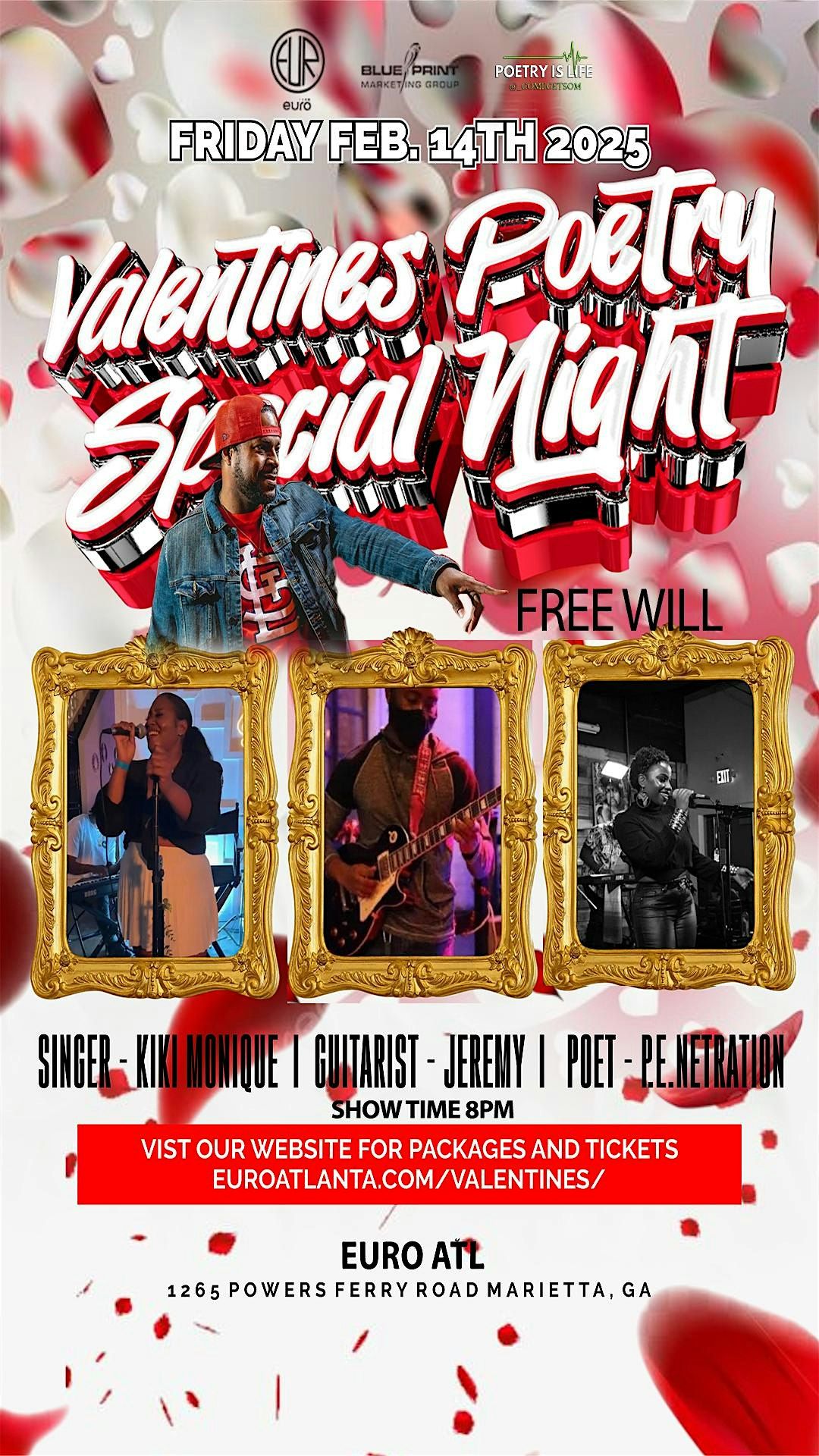 Come join us for a romantic evening filled with beautiful words and heartfelt emotions. **Celebrate** Valentine's Day in a unique way at Euro Atlanta on **Saturday, Feb. 14th, 2025** starting at **6:30 PM**.