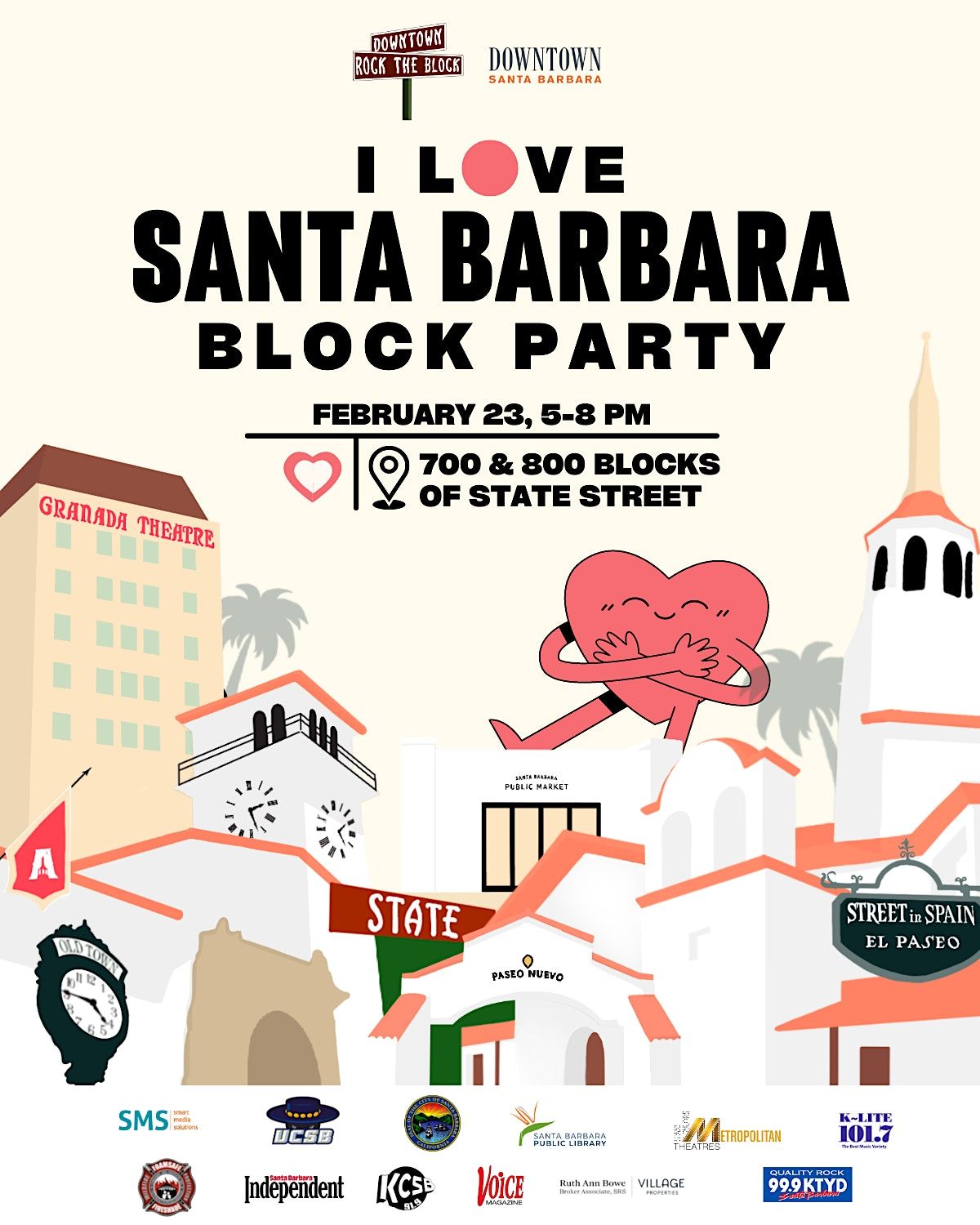 Join us as we celebrate all the things we love about downtown Santa Barbara. From dancing with DJ Darla Bea, to roller skating, yoga, face painting, and games, to performances by Junior Spirit of Fiesta, Santa Barbara High School's Cheer, and World Dance for Humanity, to opportunities to learn about & connect with beloved Santa Barbara organizations including Healing Justice, our local Earth Day organizers, Heal the Ocean, Santa Barbara Humane and more, this evening is sure to be fun for the whole family. Mark your calendars & don't miss out on this unforgettable community event. We can't wait to see you there and celebrate Santa Barbara with you!