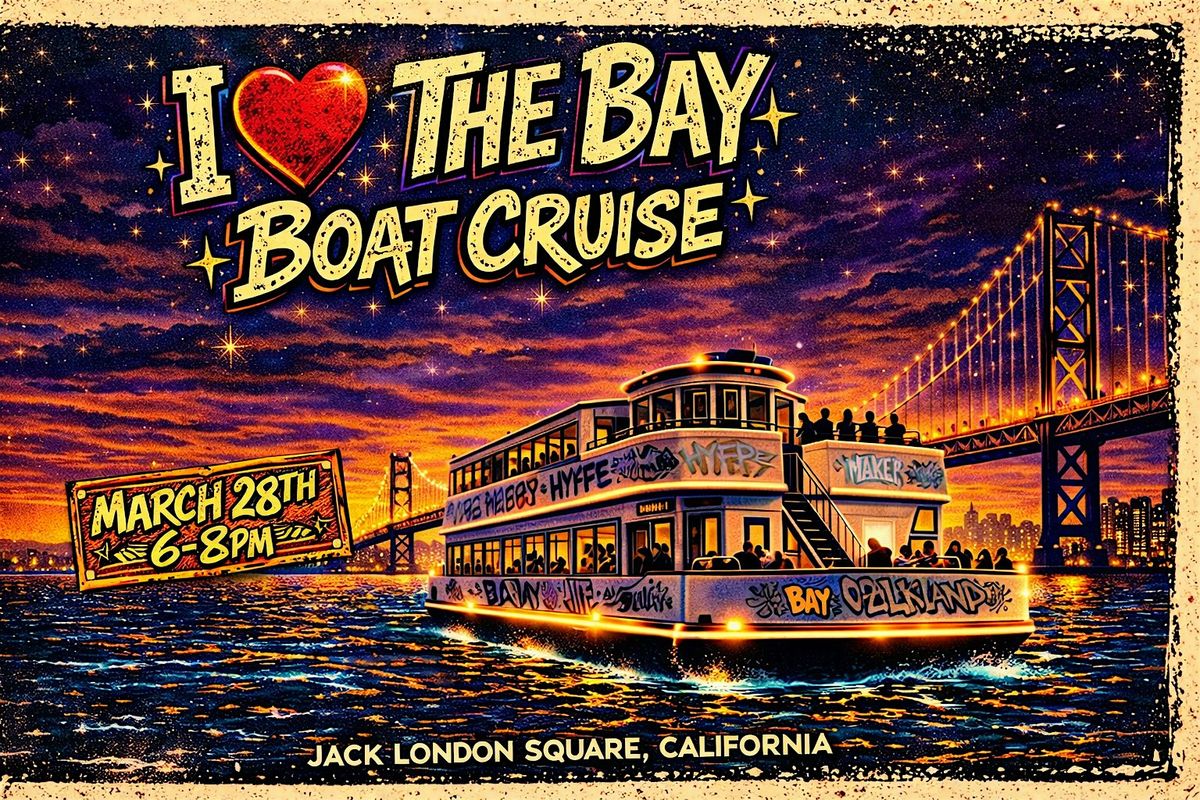 Join us Saturday, March 28th from 6–8PM for the I Love The Bay Sunset Cruise — a two-hour party on the water featuring none other than DJ Westcoast spinning the best in Hip-Hop, R&B, and Hyphy classics all night long.