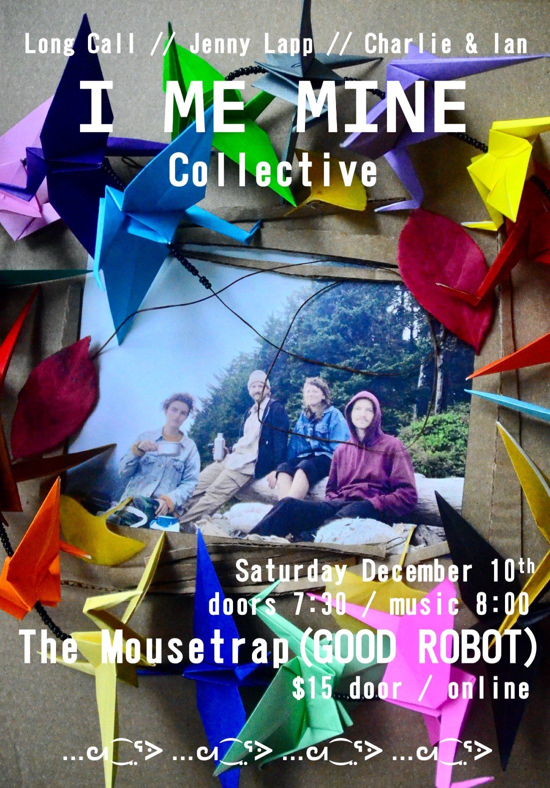 I Me Mine Collective (Long Call/Jenny Lapp/Charlie & Ian) will be playing at the Mousetrap (Good Robot) on Saturday December 10th. Every I Me Mine Collective show is a unique genre-blending mixed set and we look forward to sharing this one with you.