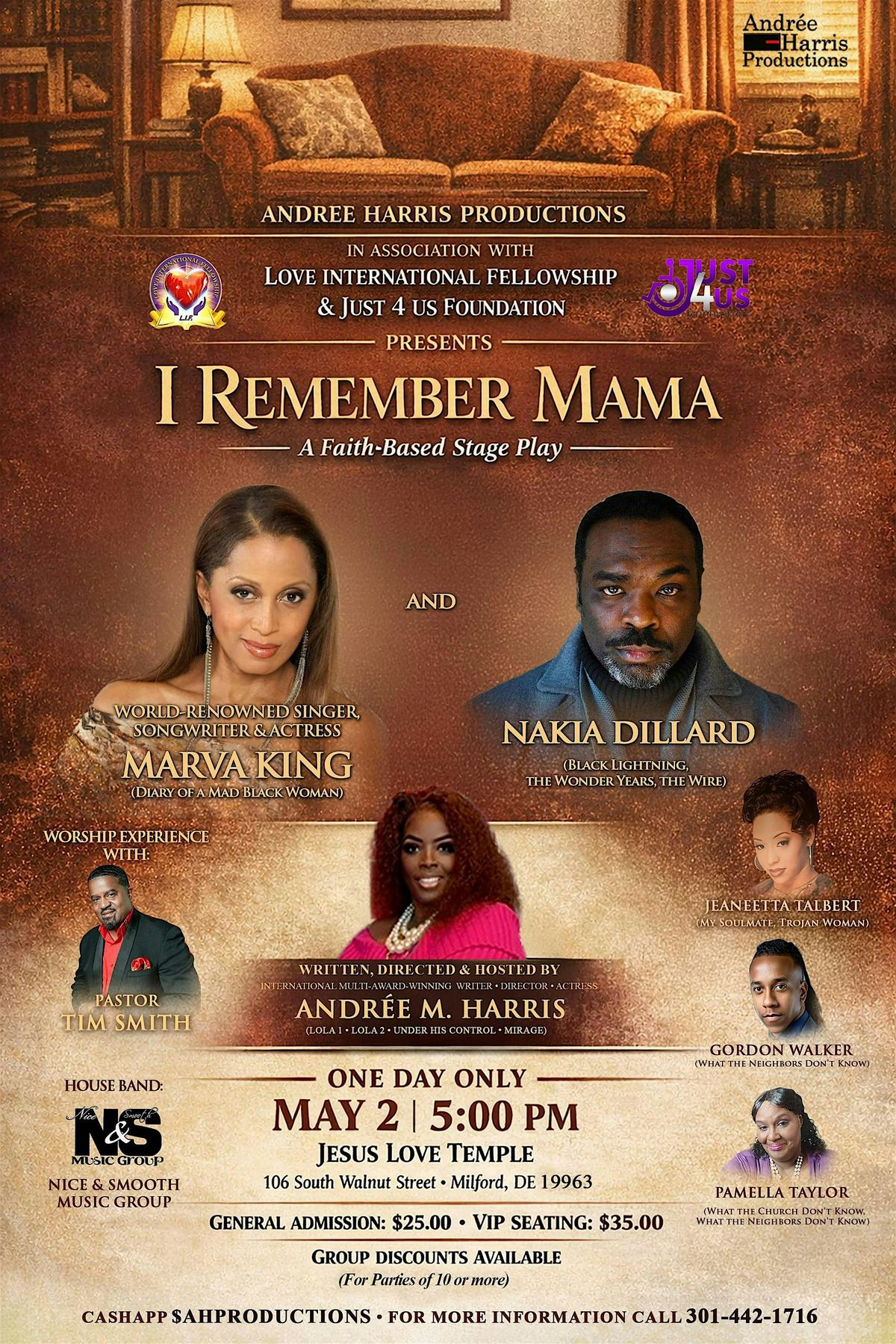 I Remember Mama is a moving, faith-centered stage play that unfolds on the first Mother’s Day after loss. Three siblings return to their childhood home, each carrying grief in a different way. Old wounds surface. Truths long avoided rise to the surface. And the living room that once held prayers becomes the place where healing must begin.