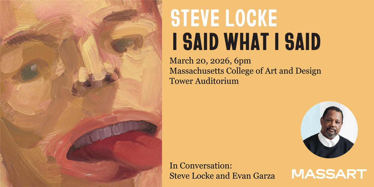 The conversation will take place in the Tower Auditorium at MassArt, 621 Huntington Avenue, Boston, MA, followed by a book signing in the West Tower Lobby Gallery. Free and open to the public. Copies of Steve Locke: I Said What I Said will be available for purchase after the talk.