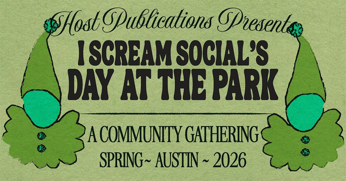 I Scream Social's A Day at the Park — a seasonal literary event that aims to deepen our friendships within the local writing community and raise funds for Host Publications to continue publishing radical poetry and fiction. Each season will feature a community meet-up, seasonally-appropriate crafts, a Host Publications book sale, and close out with a classic I Scream Social event and ice cream!