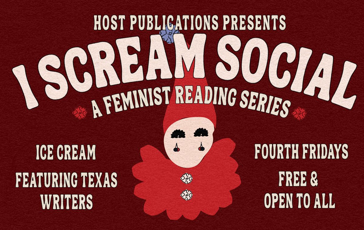 Presented by Host Publications, I Scream Social is a monthly feminist reading series and ice cream party that takes place at Alienated Majesty Books. We aim to celebrate and empower historically marginalized writers and share incredible literature and diverse perspectives to an Austin-area audience. Hosted by Host Publications editors Annar Veröld & Claire Bowman! Free & open to all!