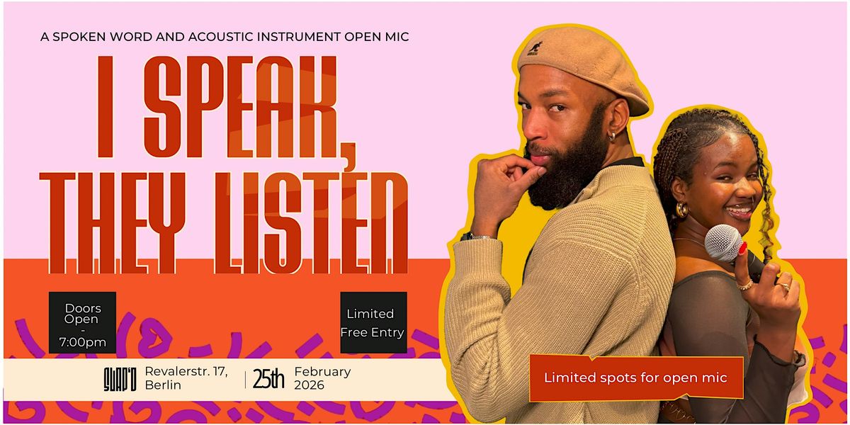 We are bringing to you yet another flavor of Home Before Dark. This time the lights will be dimmed and aimed at our stage where our spoken word and acoustic instrument open mic will come to life. I Speak, They Listen is a manifestation of you Berlin. It's a love letter to the beating heart of Berlin. The same heart that captures the pulse of the city and echoes that pulse in every creative corner. Art finds us anywhere and everywhere. I Speak, They Listen is a night of vulnerability, sharing and community. Berlin it's another night at Slap'd: bring your songs, poems, passion and Come Over!