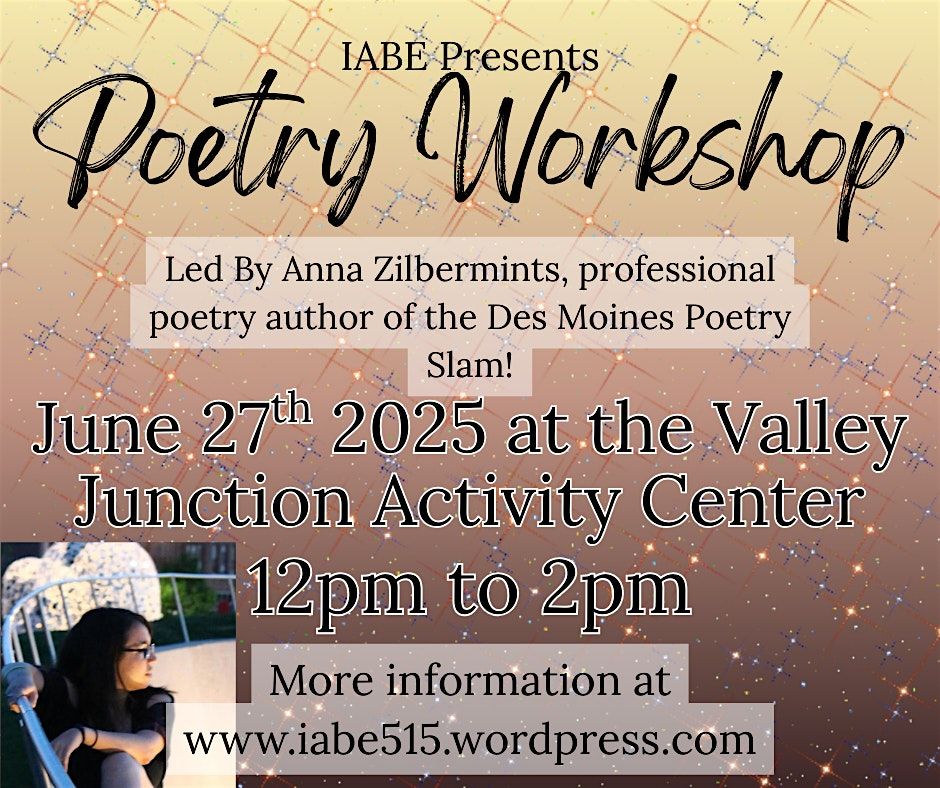 IABE Poetry Workshop by Anna Zilbermints, professional poet, author, and host of the Des Moines Poetry Slam will be your guide to your writing journey. At the workshop you will learn everything you need to know about getting the words out and how to make sense of them. Take home the confidence you need to let poetry flow and feel empowered to share your work. And when the workshop is over, enjoy the fun and excitement of the 11th Annual Indie Author Book Expo.