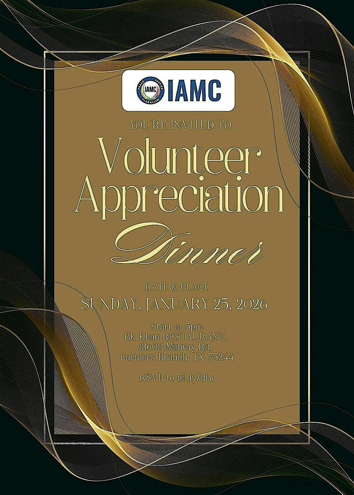 With heartfelt gratitude, IAMC invites you to a Volunteer Appreciation Dinner to thank you for your time, effort, and sincerity in serving our community over the past year. Your contributions—big and small—have made a meaningful difference, and this evening is dedicated to recognizing that service.