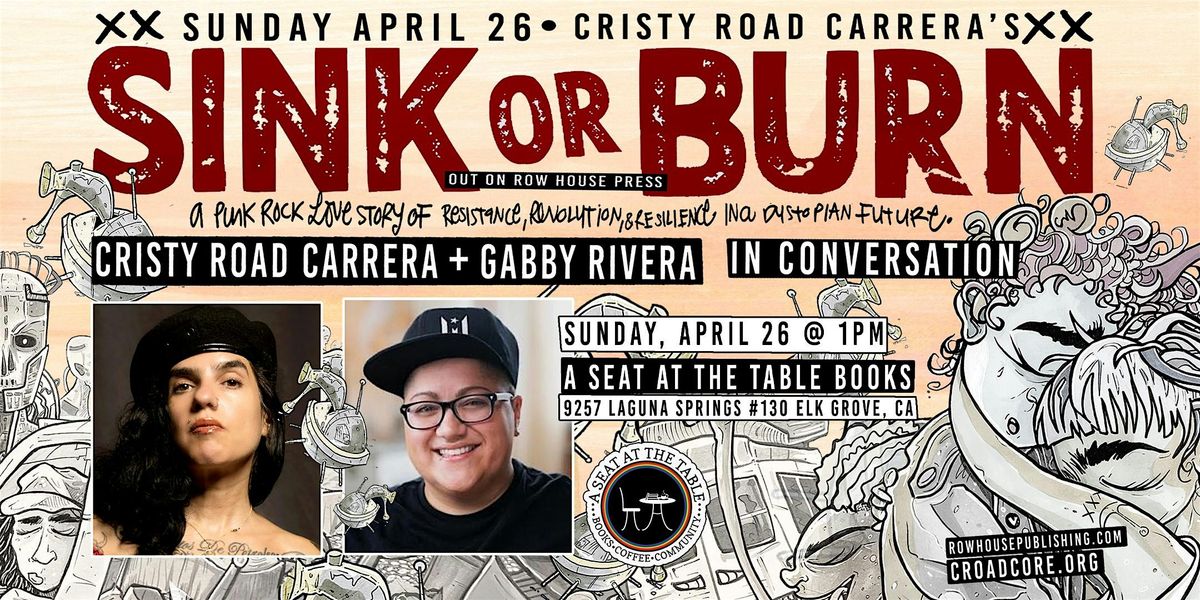 Join Cristy Road Carrera at this launch event for her beast child, Sink or Burn, an illustrated dystopian romance.In Sink or Burn, The year is 2121, and fascism has overthrown a once-thriving utopia. Amid the ashes of a fallen nation, Cheap Glitter—a queer, punk rock band—becomes the voice of resistance. Cheap Glitter's frontwoman, Carolina Tatiana San Lazaro De La Quinta, or CT, tells Cristy Road's personal story of sexual tension, sexual trauma, and falling in love with both the resistance movement and her bandmate. As they tour across a fractured America, raising funds for the fight against a brutal regime, they navigate wildfires, sunken landscapes, and the terrifying laws of a collapsing society.