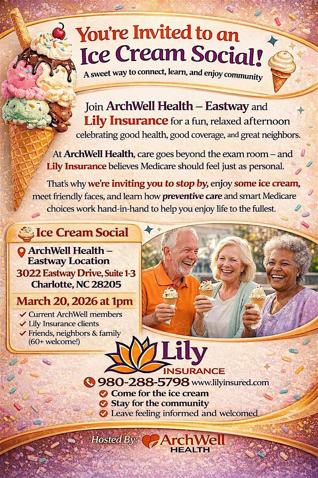 Join ArchWell Health – Eastway and Lily Insurance for a fun, relaxed afternoon celebrating good health, good coverage, and great neighbors.At ArchWell Health, care goes beyond the exam room — and Lily Insurance believes Medicare should feel just as personal.