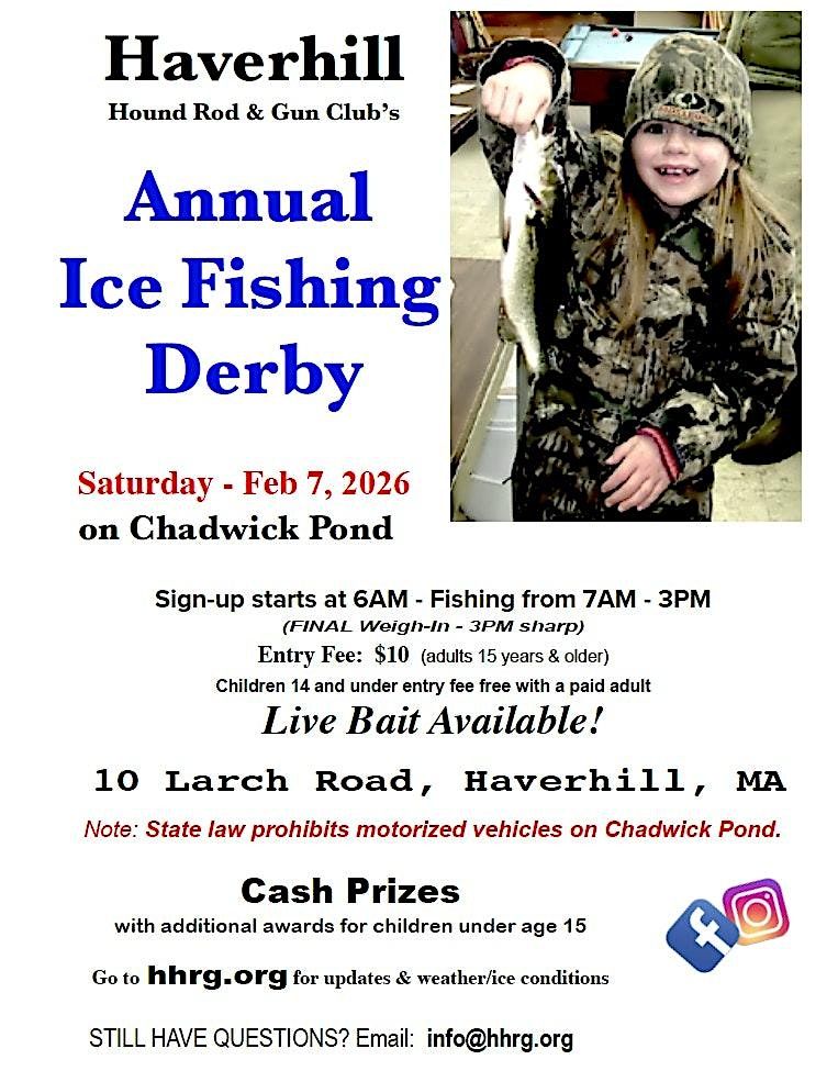 The Haverhill Hound, Rod & Gun Club is excited to announce the return of its annual Ice Fishing Derby, set for Saturday, February 7, 2026. This event, which welcomes families and the broader community, will take place on Chadwick Pond at the HHRG Club, located at 10 Larch Rd in the Bradford area of Haverhill.