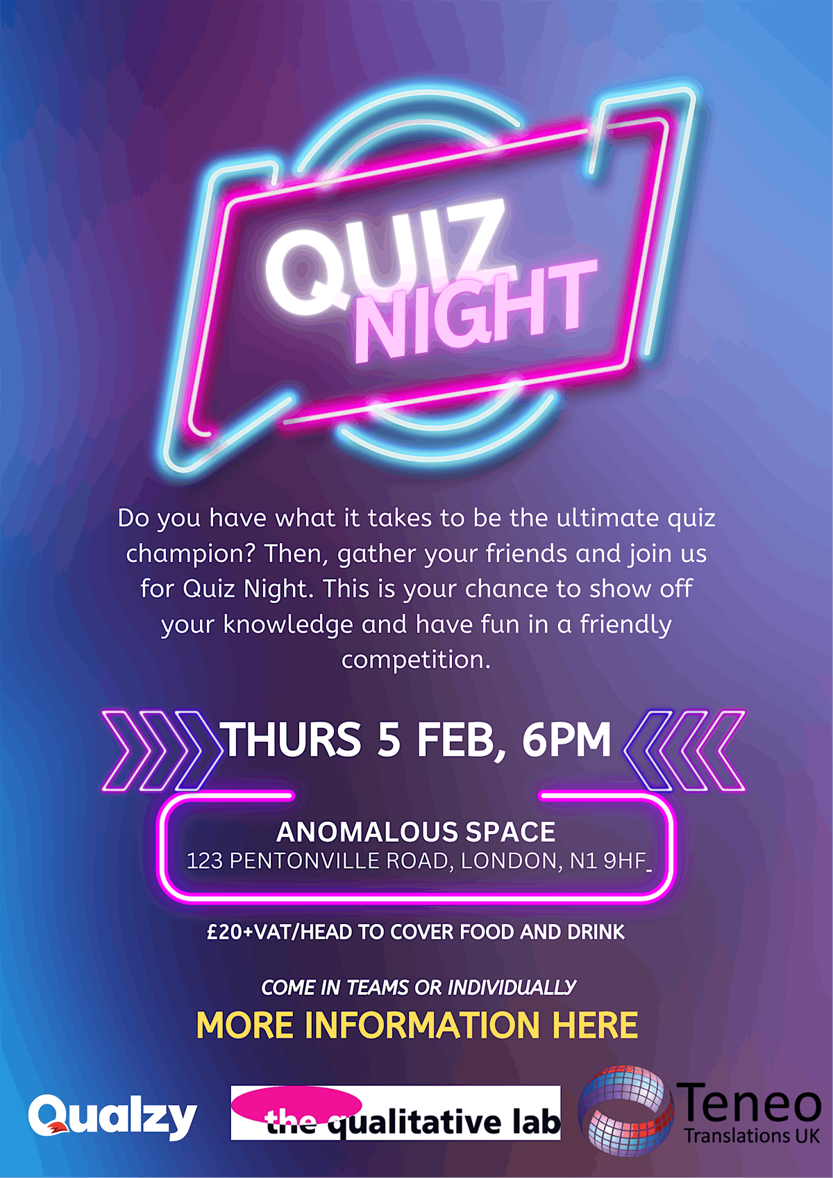 Annual Quiz Night - come and join us! Always a great atmosphere with nice food and drink