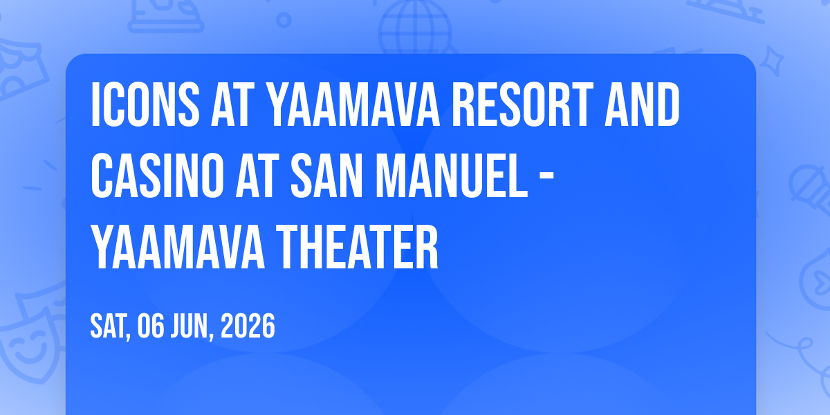 🌟 Journey into wonder at Icons at Yaamava Resort and Casino at San Manuel - Yaamava Theater, where extraordinary experiences await around every corner! 🏛️ Set against the backdrop of Yaamava Resort and Casino at San Manuel - Yaamava Theater in dynamic Highland, CA, this event promises to exceed all expectations. 📅 Join us on June 6th, 2026 at 08:00 PM for a celebration that combines innovation, entertainment, and community spirit in perfect harmony. ✨ There will be an atmosphere where memories are made and stories come alive, ensuring every guest experiences something truly remarkable. 🎊 This is more than just an event; it's a journey into the extraordinary!