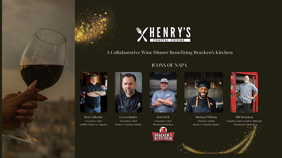 Experience an elevated evening at Henry’s Coastal Cuisine as acclaimed guest chefs come together for a multi-course wine dinner in support of Bracken’s Kitchen. Each course highlights seasonal ingredients, creative technique, and expertly paired wines, all with a shared purpose: making a difference in our community. Your participation helps sustain Bracken’s Kitchen’s vital efforts to combat hunger and food waste while enjoying an exceptional culinary event. Ticket prices are $249 which includes service charge. $75 of each ticket will go directly to Bracken's Kitchen.