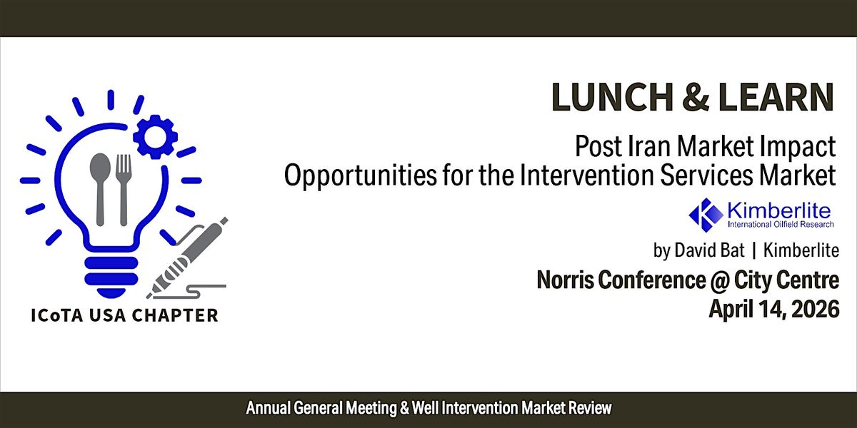 Join us for our Annual General Meeting & technical luncheon event on Tuesday, April 14th at the Norris Conference Center. Lunch will be served starting at 11:30 followed by a brief chapter overview, 2026-27 US Chapter Board introduction and service market outlook by guest speaker, David Bat of Kimberlite International Oilfield Research.