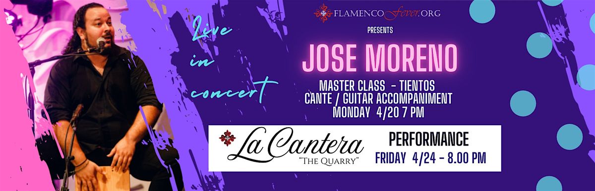 Get ready for an amazing night with Jose Moreno, a talented singer, dancer, and guitarist! Join us at La Cantera Arts Conservatory "The Quarry" on April 24, 2026 at 10:00 AM (Central Time). Experience the passion and energy of authentic flamenco in a cozy, artsy setting. Don’t miss this chance to see Jose’s incredible performance live and up close!