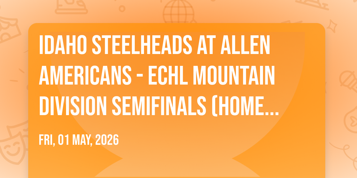 π Location: 33.1292, -96.6572β¨ Discover the extraordinary at Idaho Steelheads at Allen Americans - ECHL Mountain Division Semifinals (Home Game 4), where magic meets reality in ways you've never imagined! ποΈ Set in Credit Union of Texas Event Center nestled in bustling Allen, TX, this event promises to be a landmark occasion. π Taking place on May 1st, 2026 at 08:30 AM, it's going to create an atmosphere where every moment becomes a cherished memory. π Immerse yourself in an experience crafted with attention to every detail, designed to surprise and delight at every turn. They have worked tirelessly to ensure this event exceeds all expectations, bringing together elements of entertainment, innovation, and pure joy. π Don't miss your chance to be part of this remarkable journey!