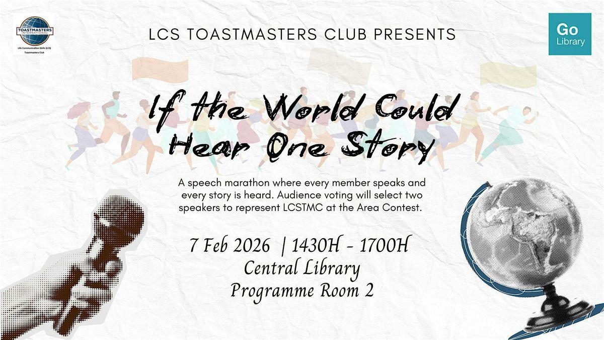 “If the World Could Hear One Story” is a Speech Marathon organised by LCS Toastmasters Club, where members take the stage one by one to share a 5–7 minute speech on a story they believe is worth hearing.