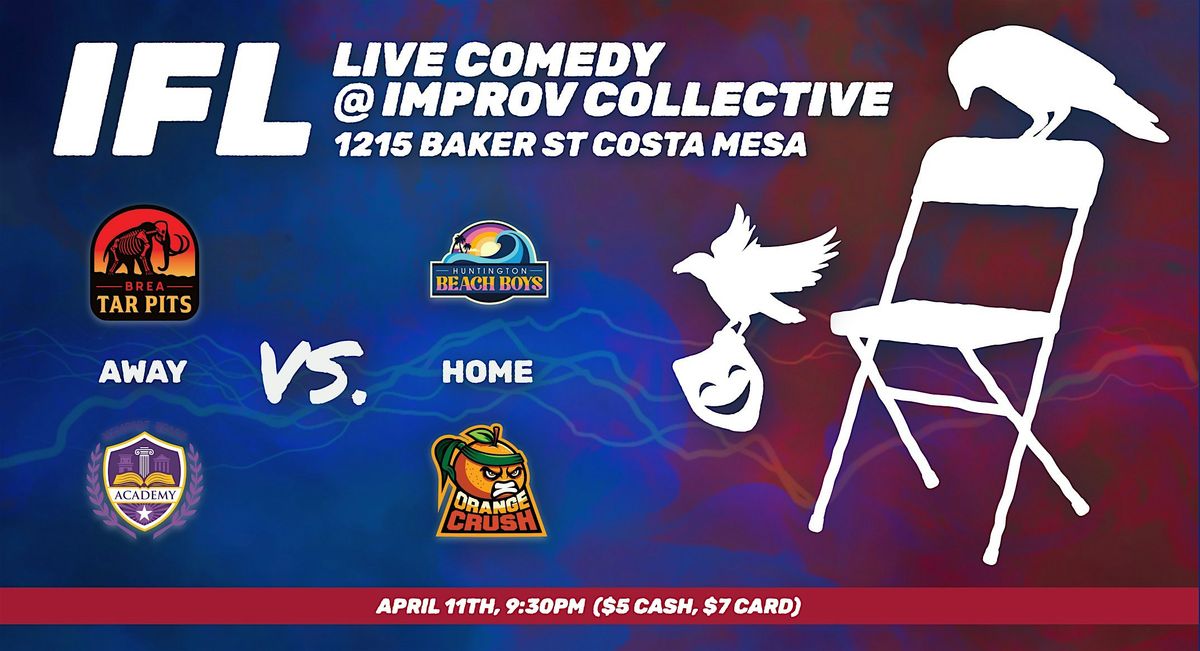 Orange County's favorite comedy sporting event is back for the 2026 season. Witness teams complete with coaches, uniforms, commentators, and scorekeepers compete in improvised comedy for your laughs. Every laugh counts and the points DO matter. You wont want to miss a minute of the action! Two head-to-head matches in one night for just $5 cash, $7 card.