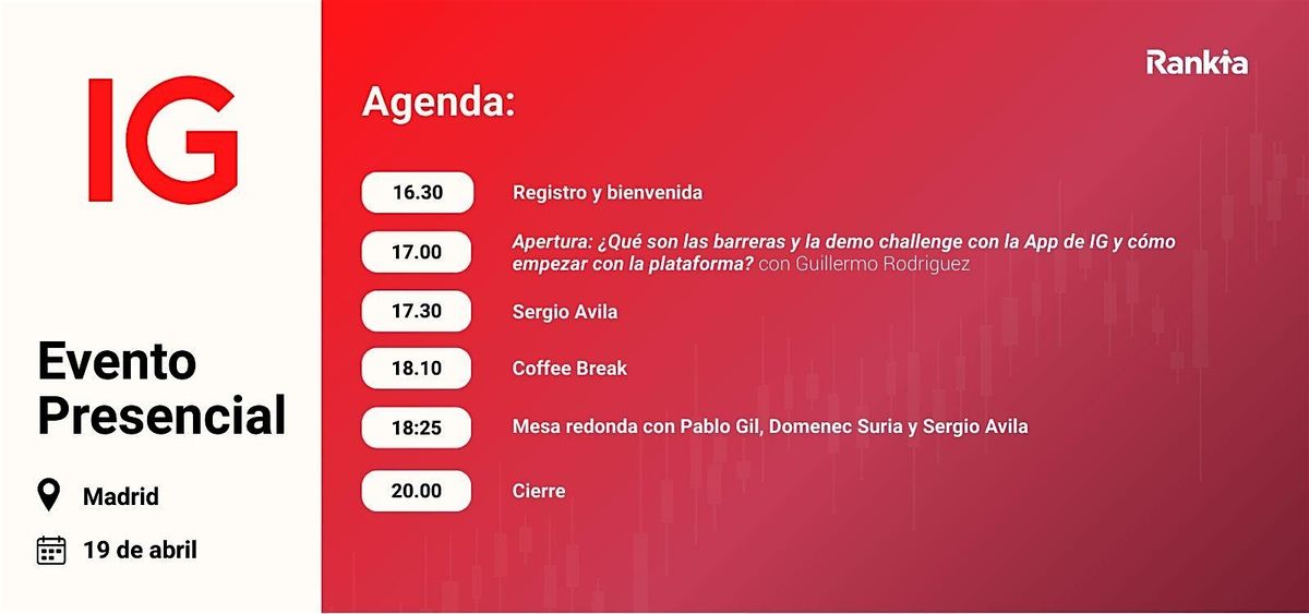 Puedes formalizar tu inscripción de forma más ágil a través de el siguiente link: https://www.rankia.com/eventos/7734-ig-madrid