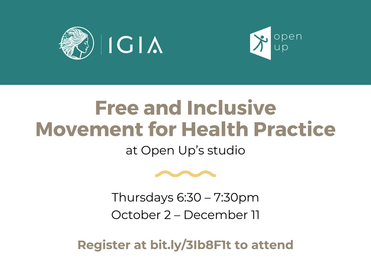 While our Thursday Community Yoga is on pause, come check out this inclusive, gentle movement class! Principal IGIA Instructor, Sharon Scuoteguazza will lead this class.