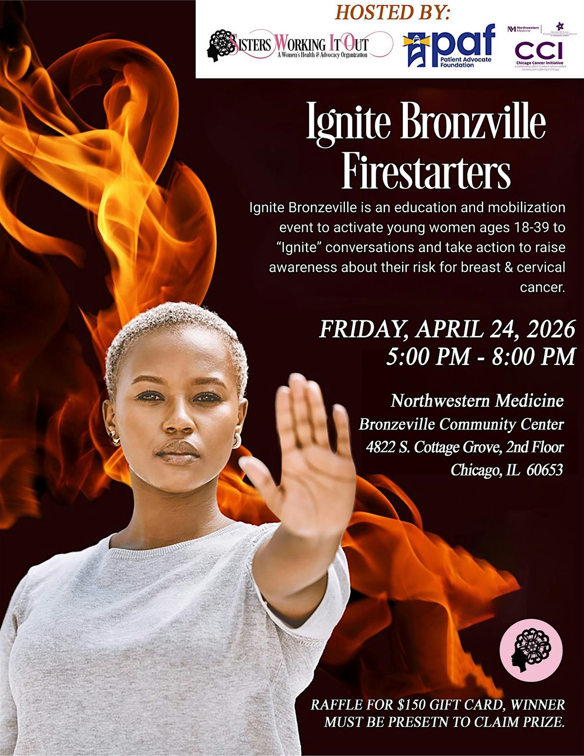 Get ready to spark connections and ignite change at Ignite Bronzeville Firestarters! This in-person event is an education and mobilization event to activate young women aged 18-39 to “ignite” conversations and take action to raise awareness about their risk for breast & cervical cancer.