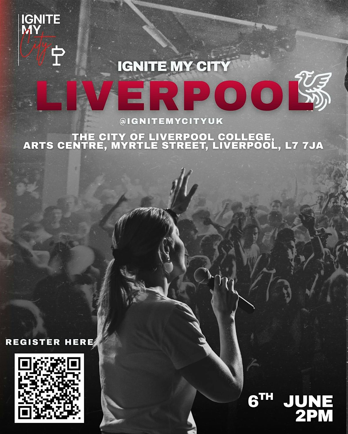 Join us on Saturday 6th June at 2PM at The City of Liverpool College - The Arts Centre for a powerful time of worship, intercession, and igniting in the heart of Liverpool.
