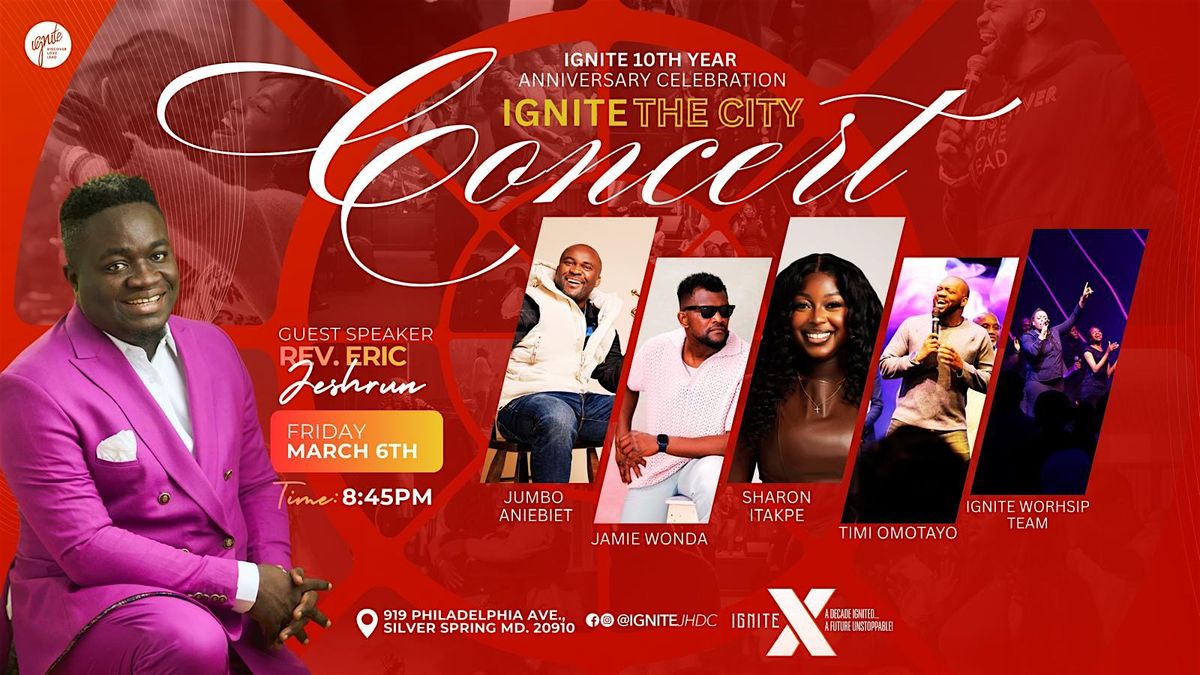 Join us for an unforgettable night of worship, praise, and celebration as Ignite Church of Jesus House DC marks 10 years of Godβs faithfulness with our Ignite the City Concert.